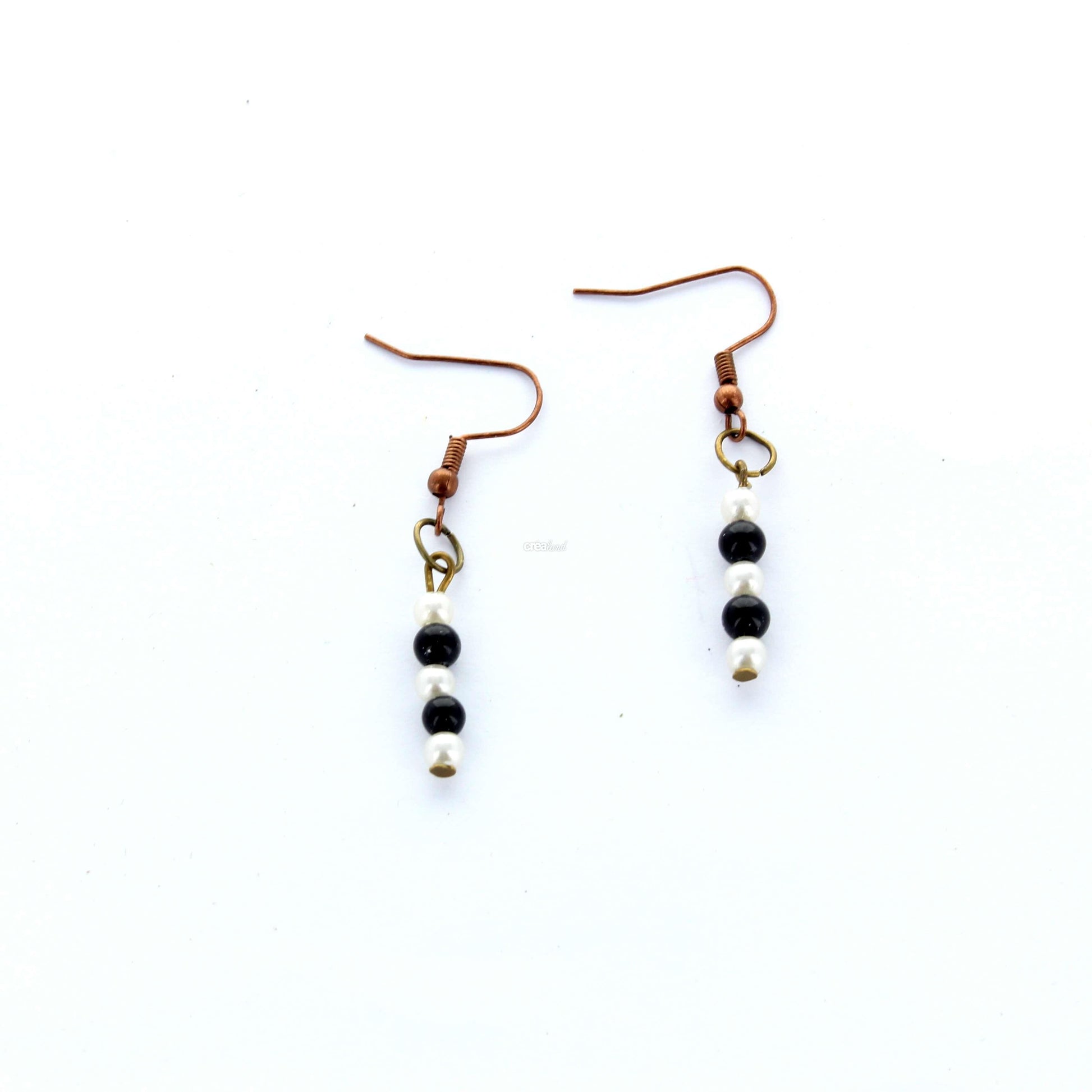 Boucle d'oreilles | Pierre jade noire | Perle nacrée | Modèle 9