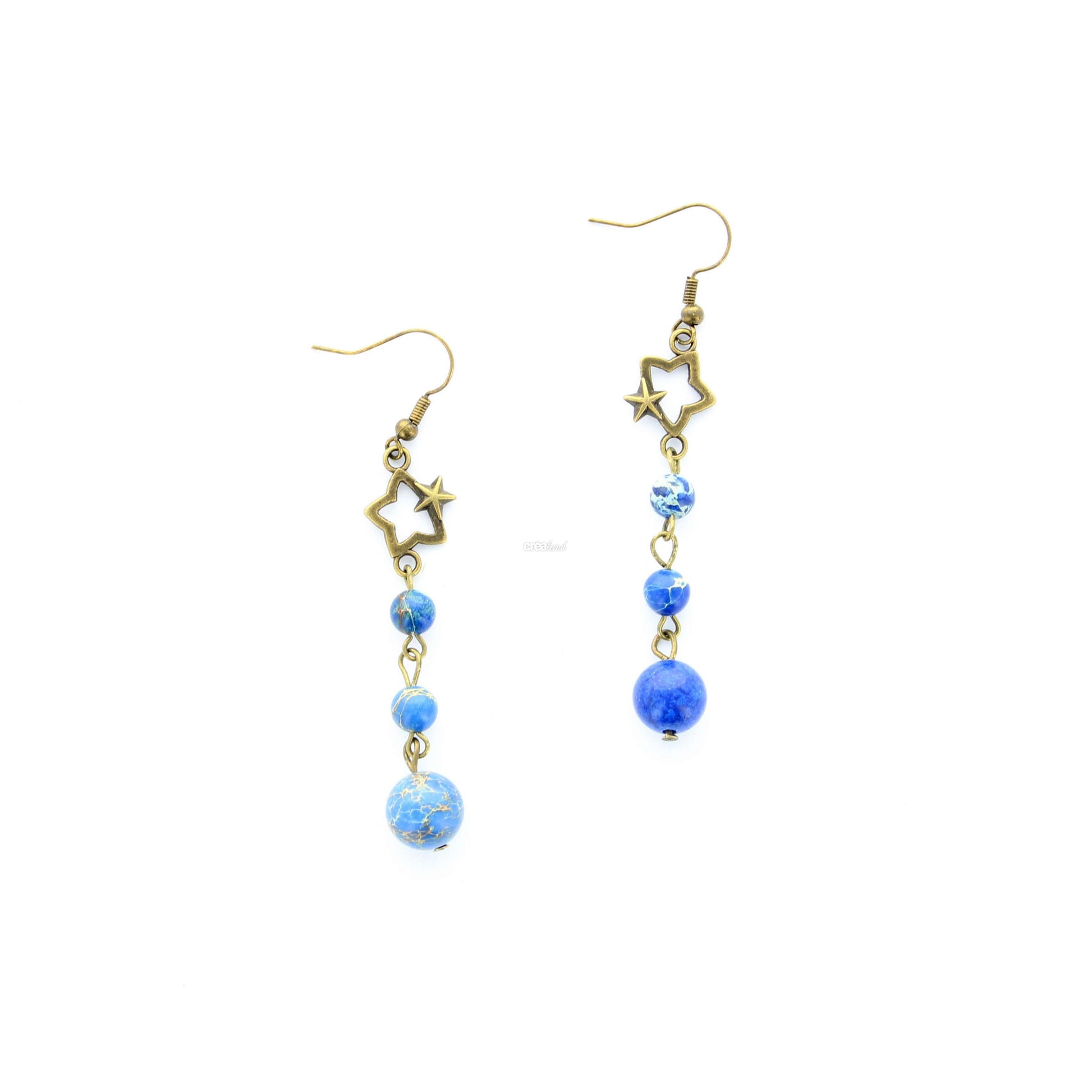 Boucles d'oreilles avec ses pendants en Lapis Lazuli et son charme en forme d'étoile