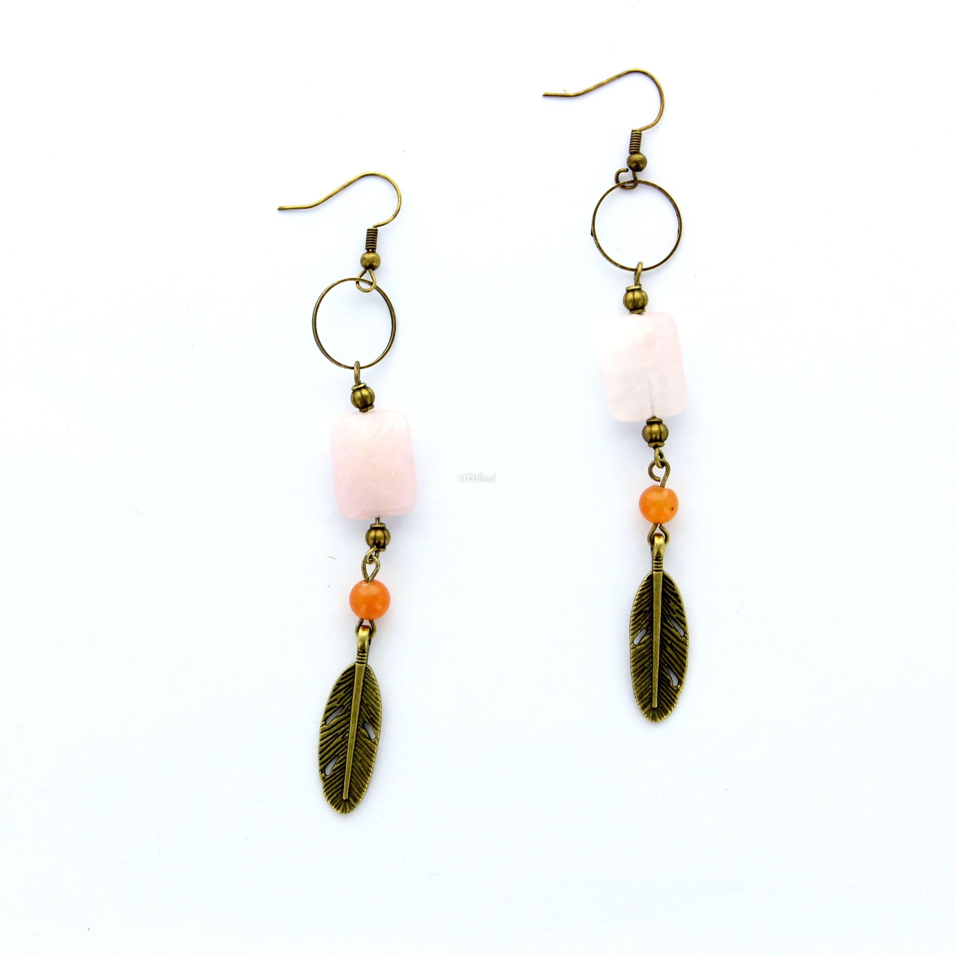 Boucle d'oreilles | Pierre quartz rose | Pierre agate orange | Modèle 1