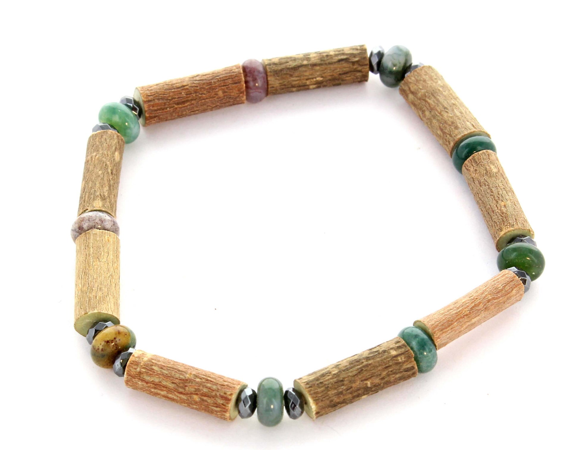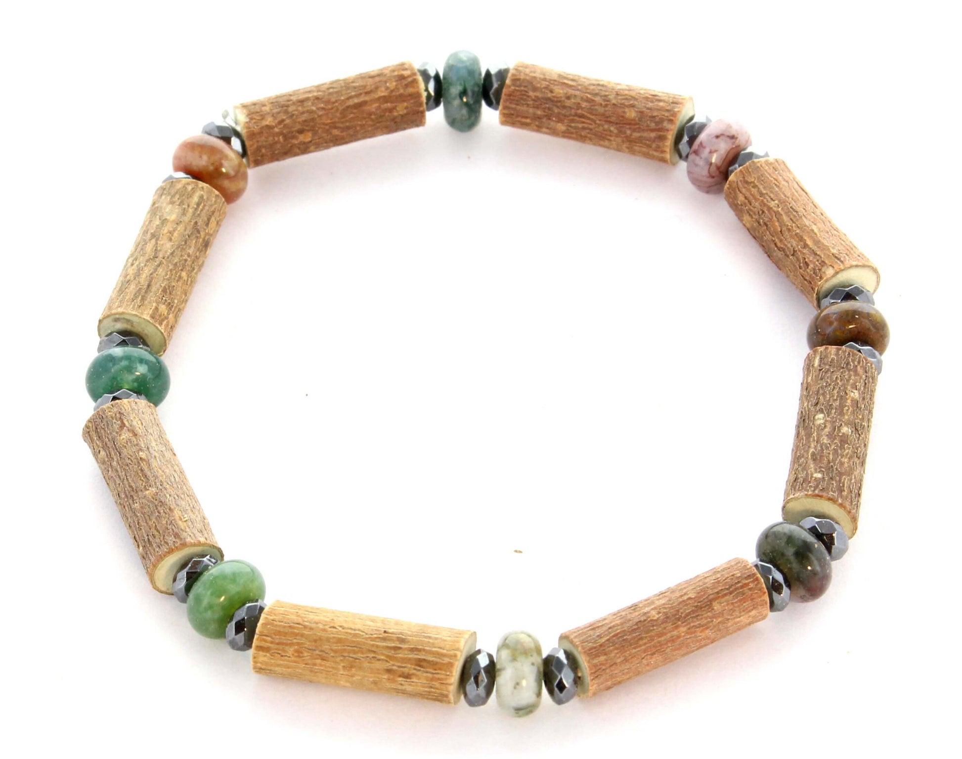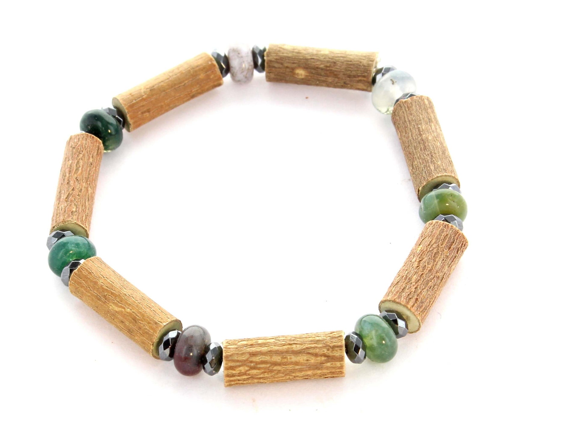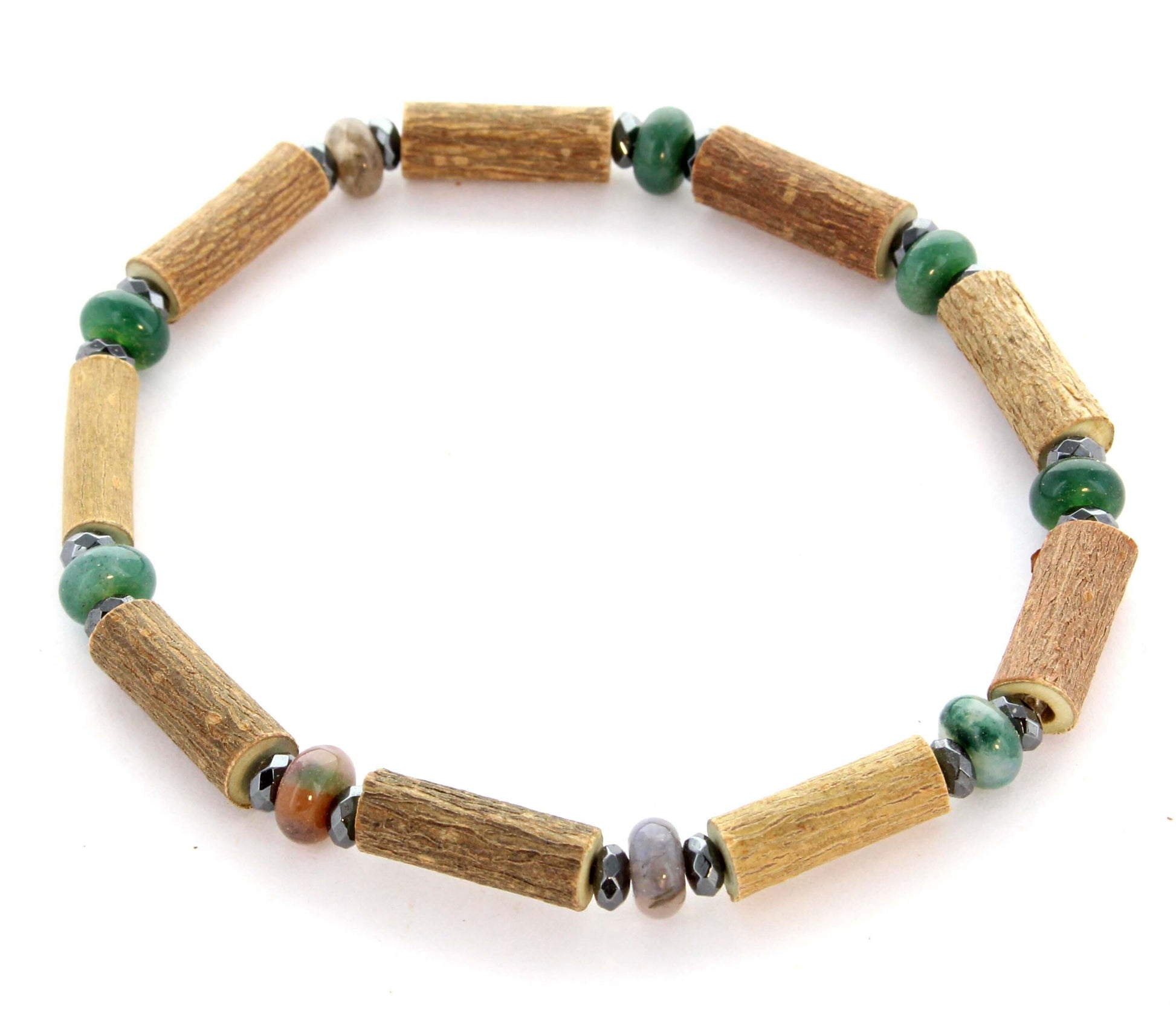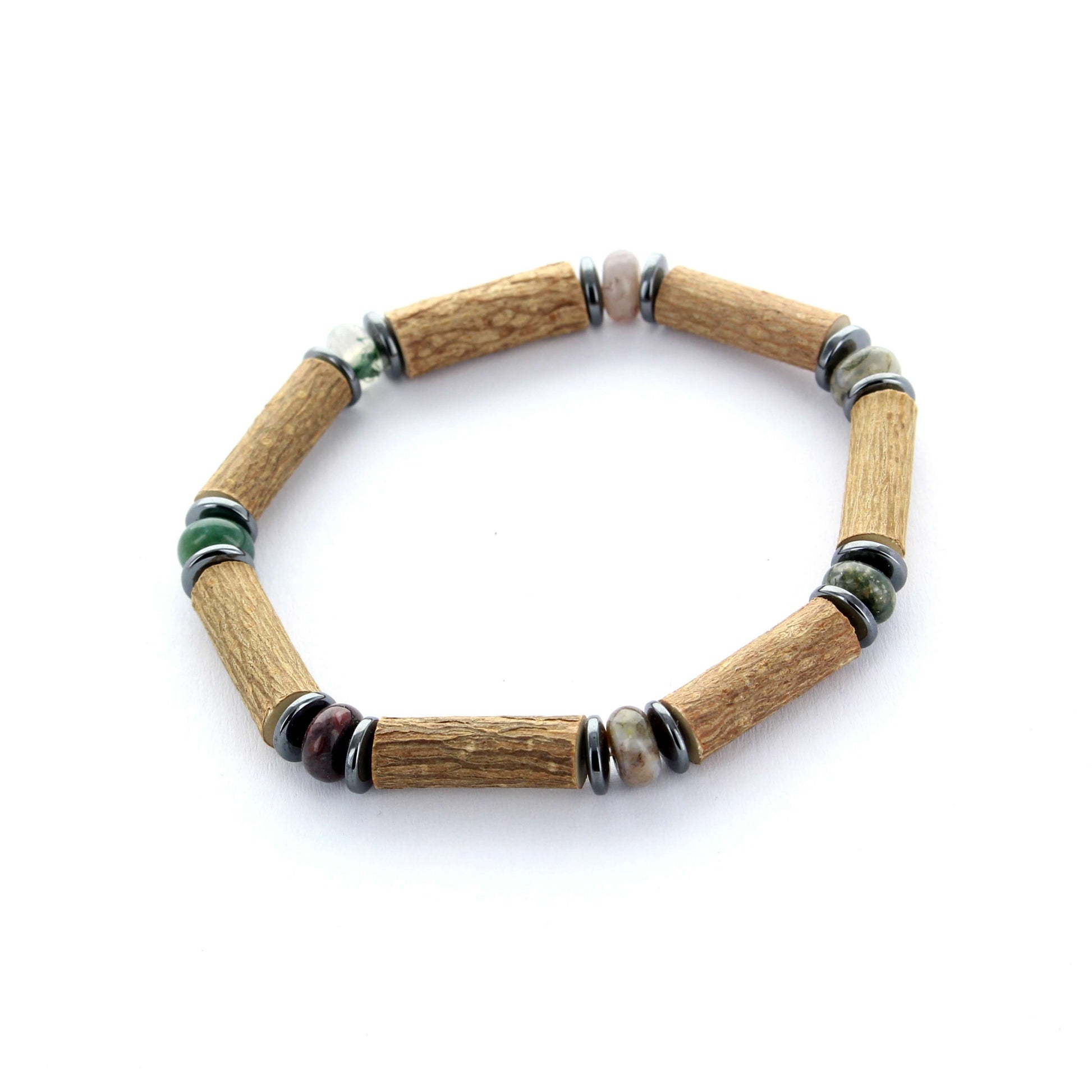 Bracelet Agate Indienne : Protection et Harmonie. Renforcez votre Force Intérieure avec Hématite et Noisetier, un bijou artisanal mixte.