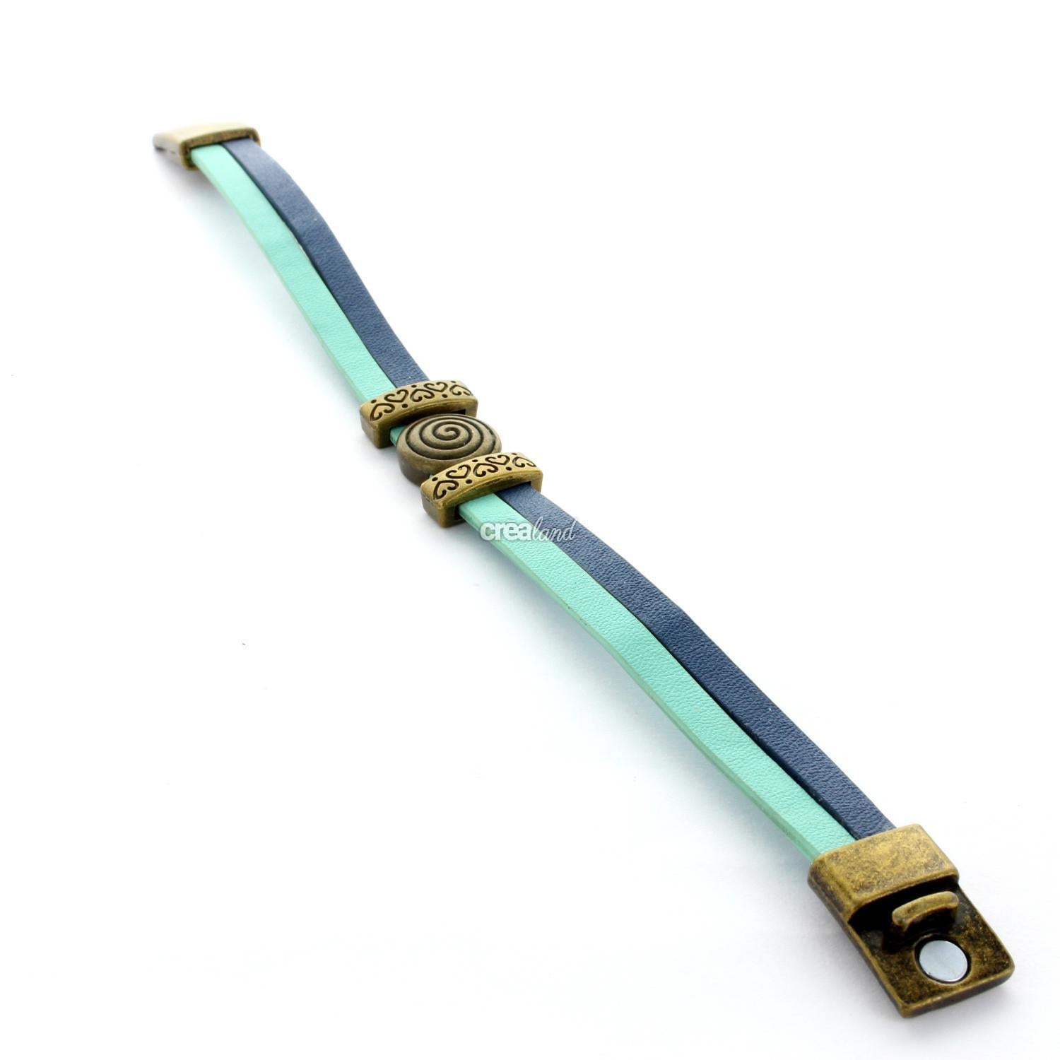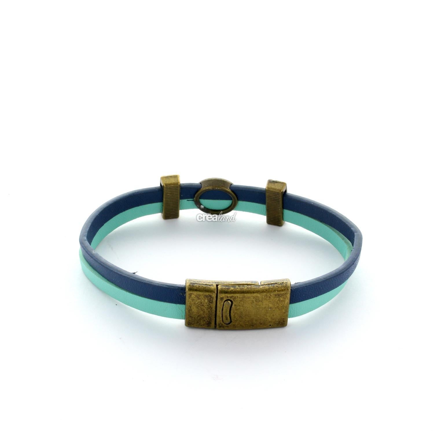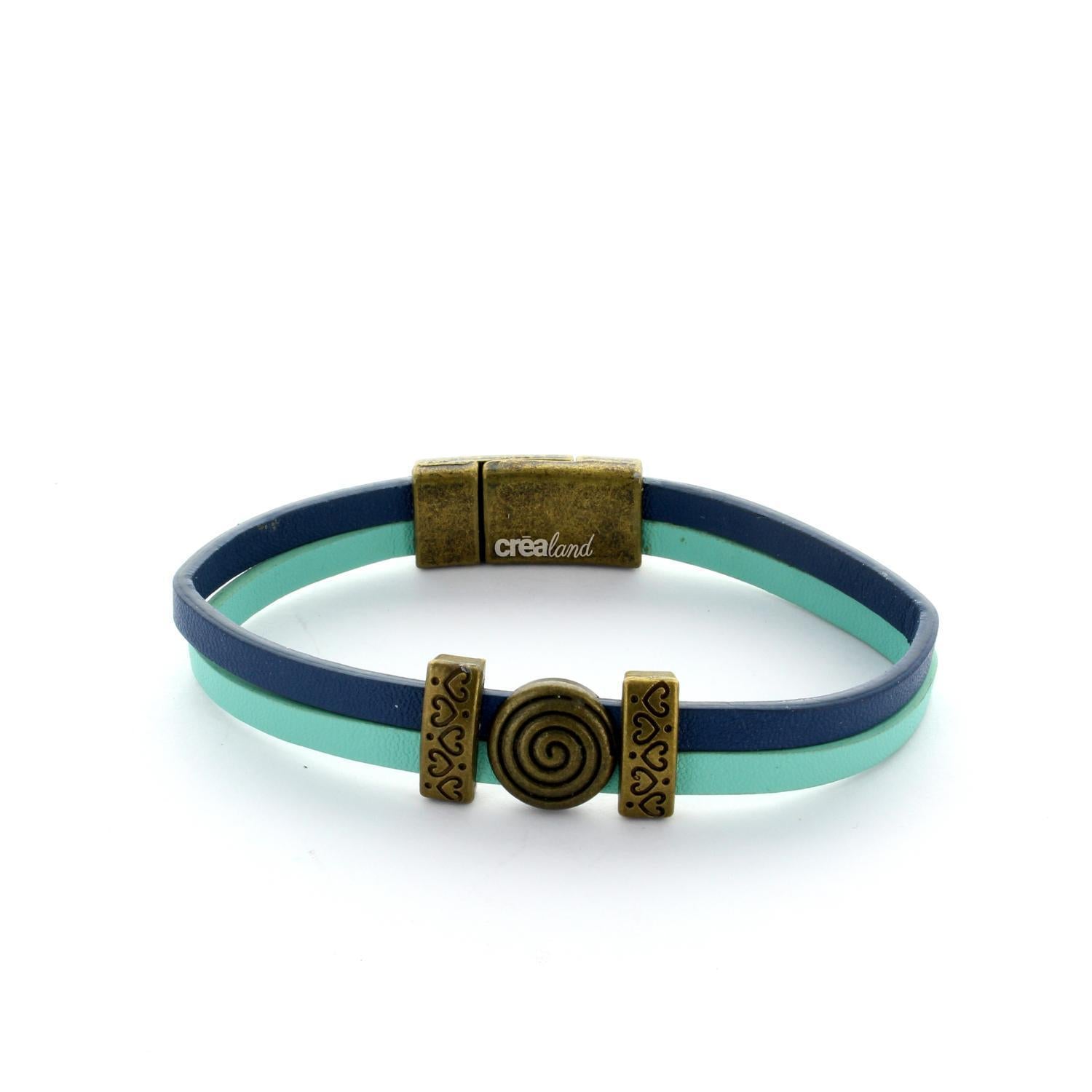 BRACELET DOUBLE CUIR BLEU CLAIR ET FONCE AVEC CHARME ET FERMOIR MAGNETIQUE