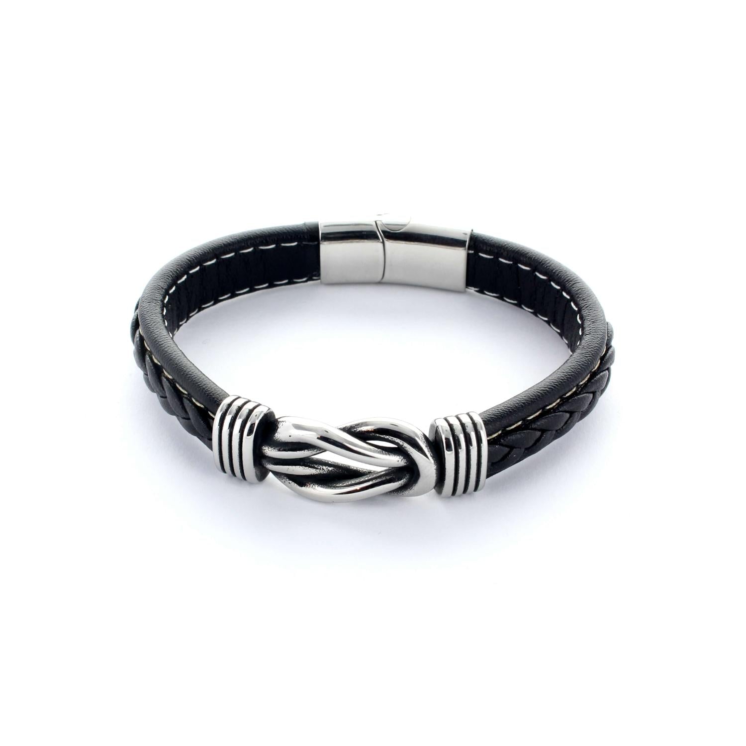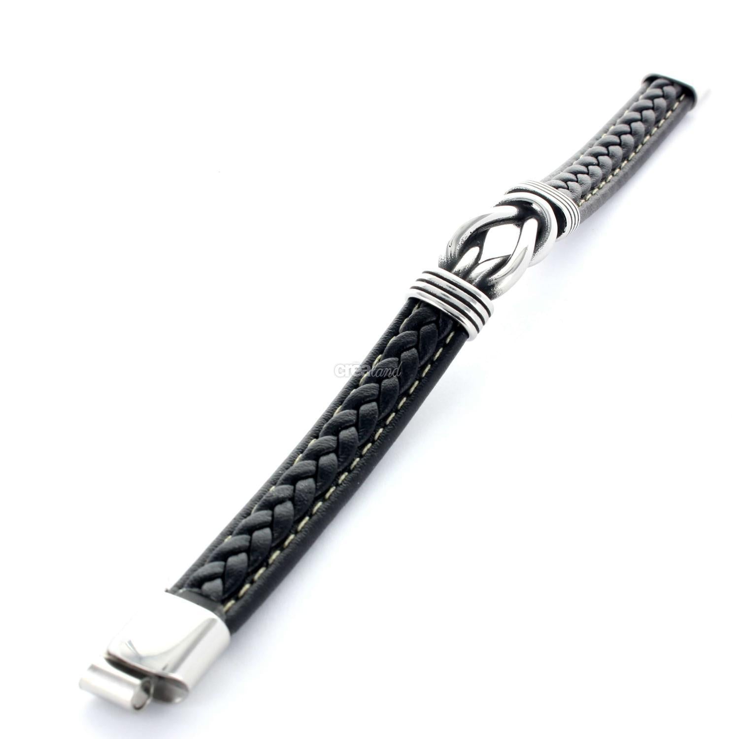 Joli bracelet en cuir noir cousu pour femme et homme.