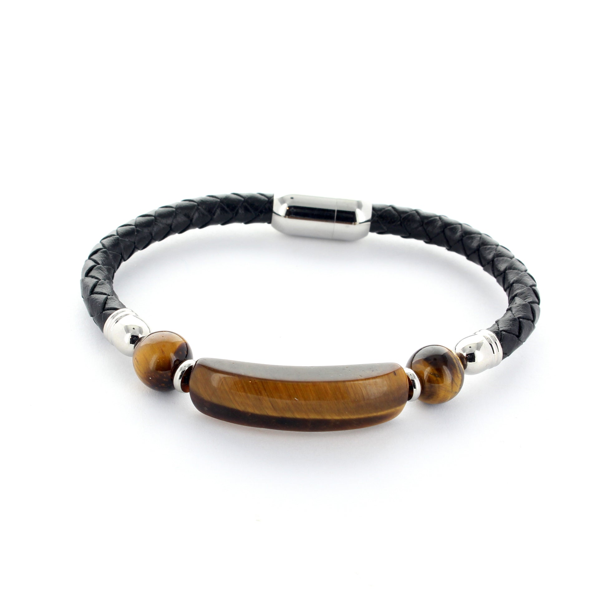 Bracelet en cuir et pierre oeil de tigre modèle 10