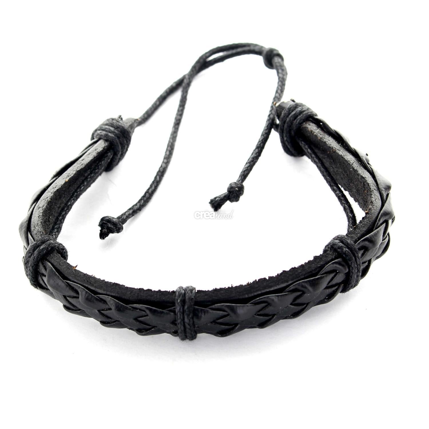 Bracelet en cuir Ttessé noir - taille réglable pour un ajustement parfait