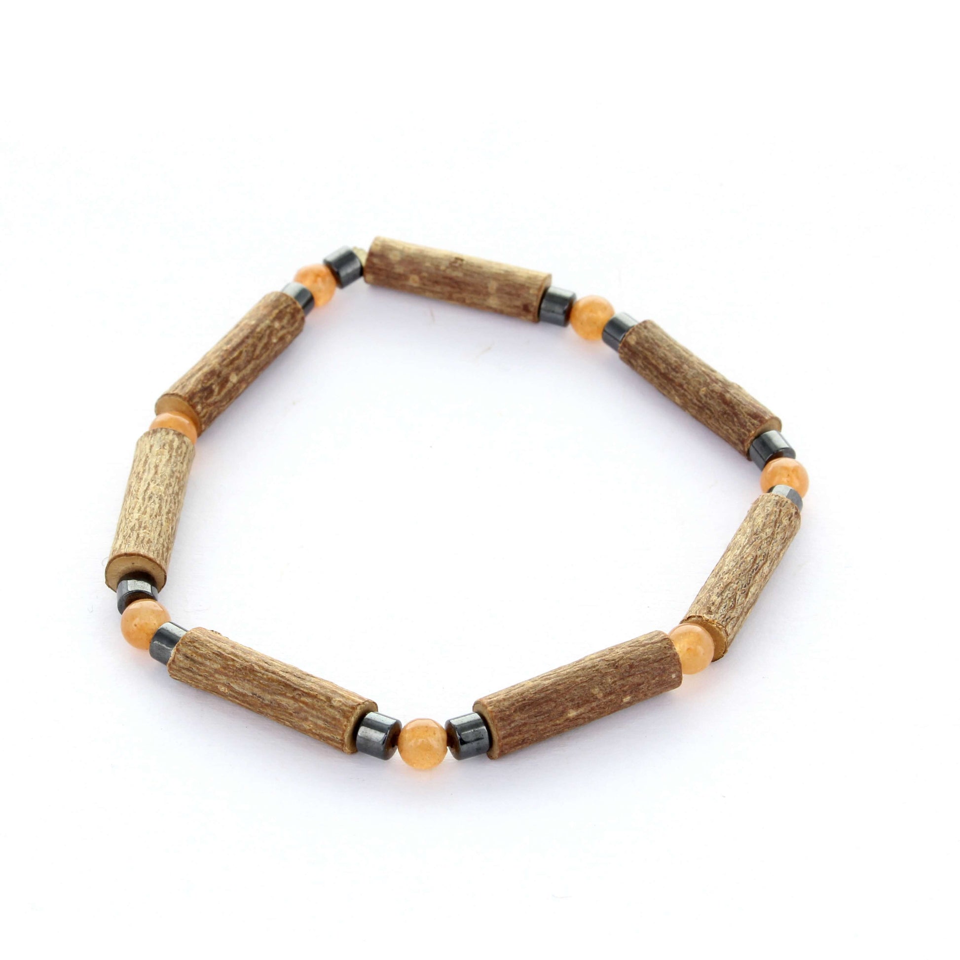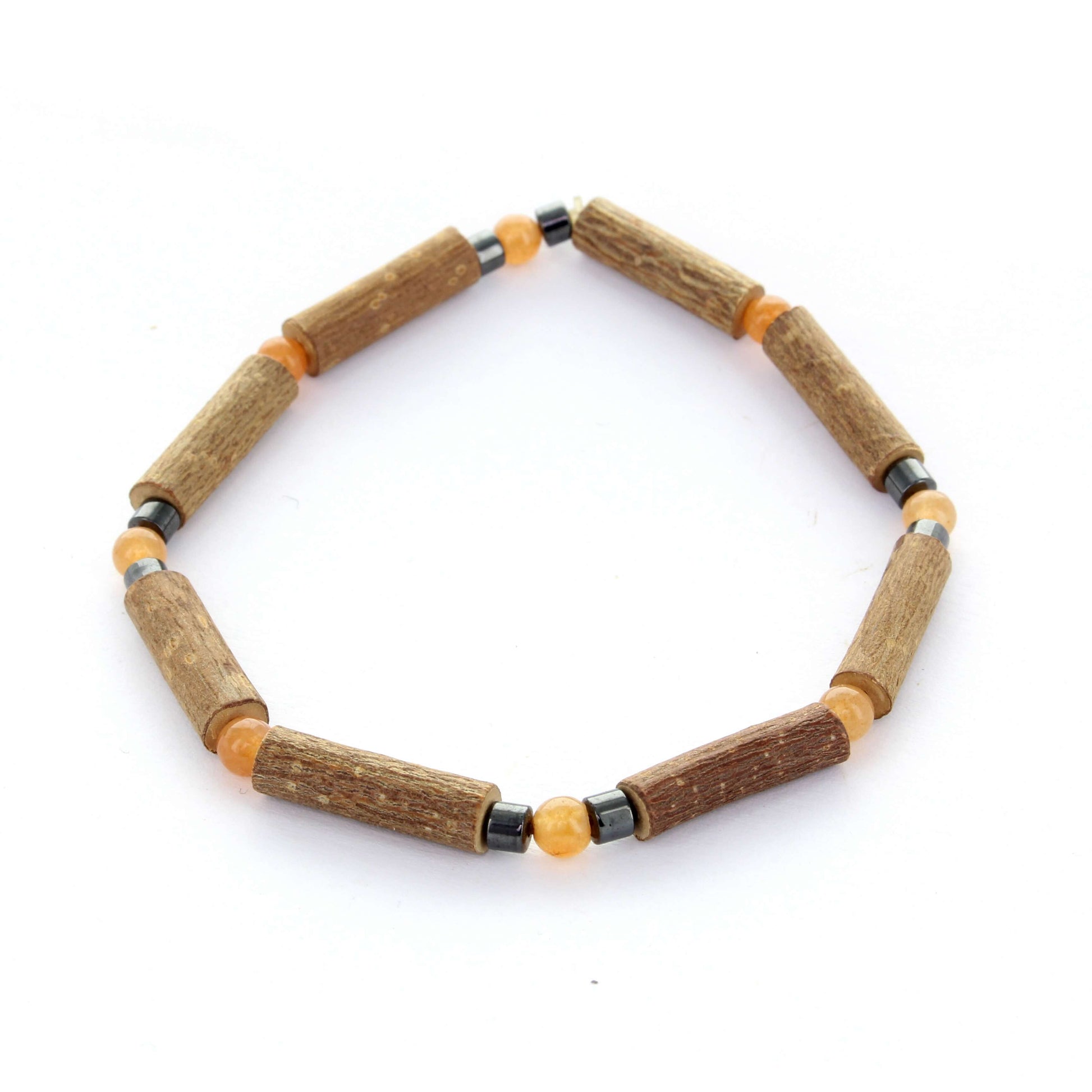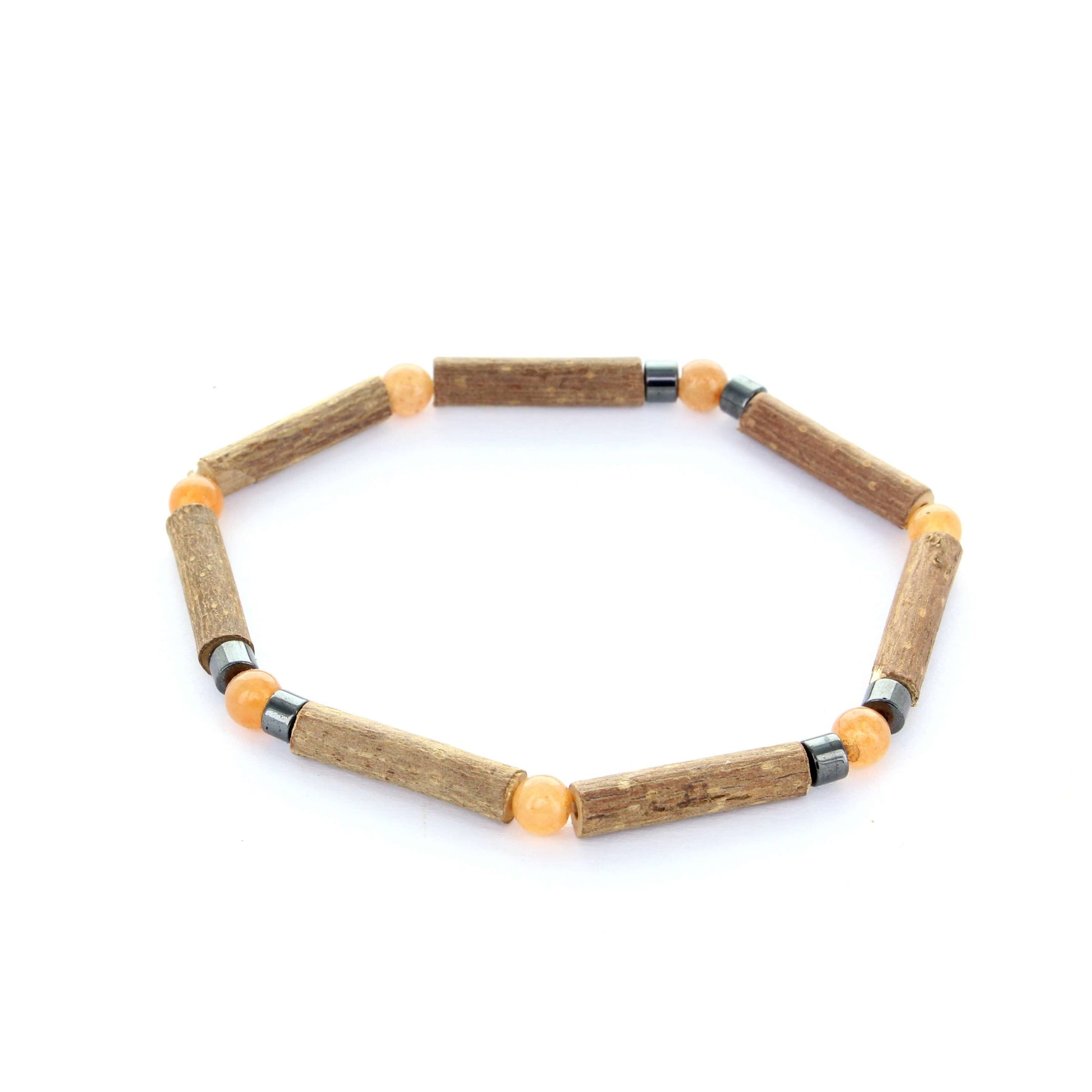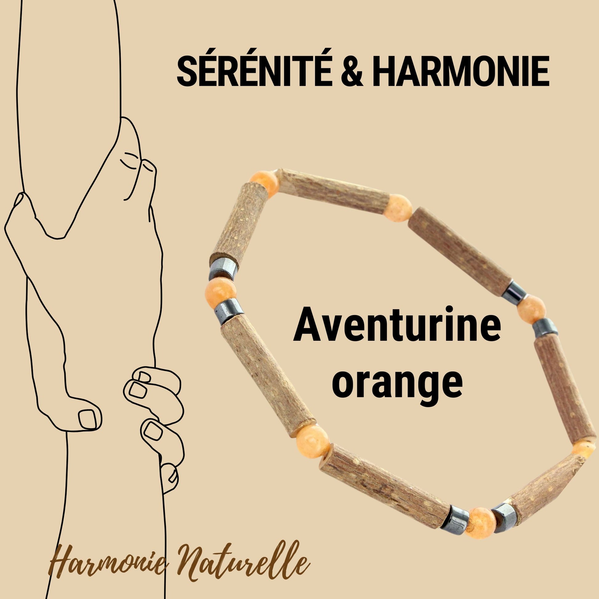 Bracelet Énergie Positive en Noisetier, Aventurine Orange & Hématite - Harmonie et Sérénité
