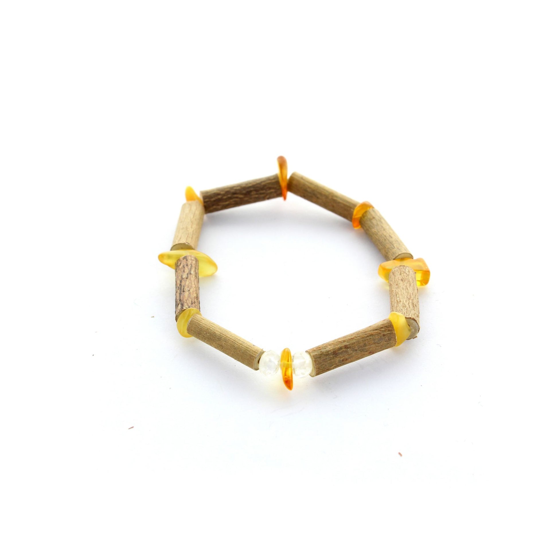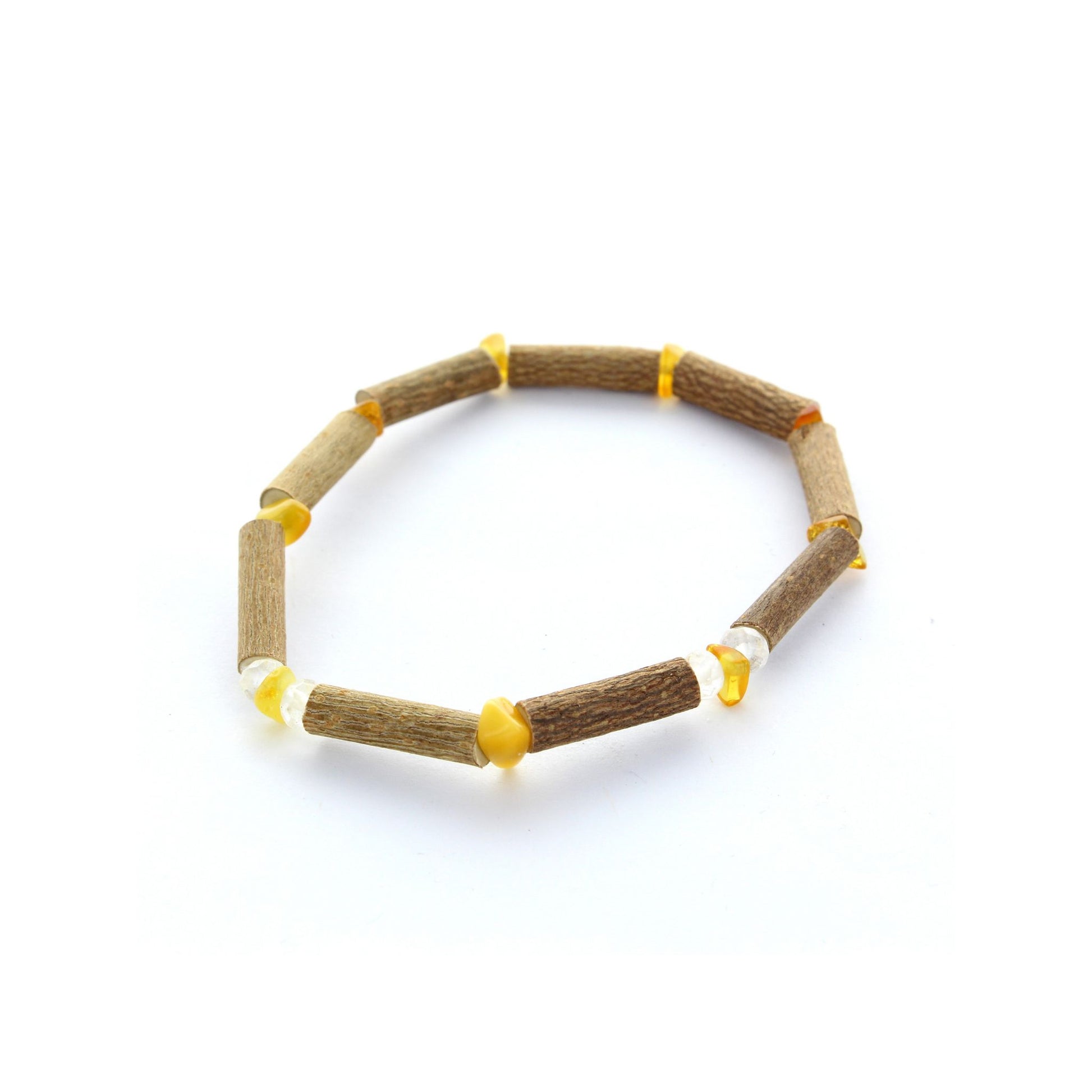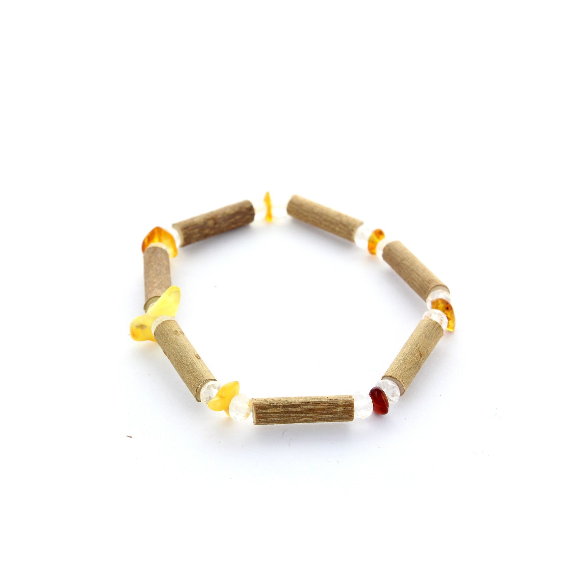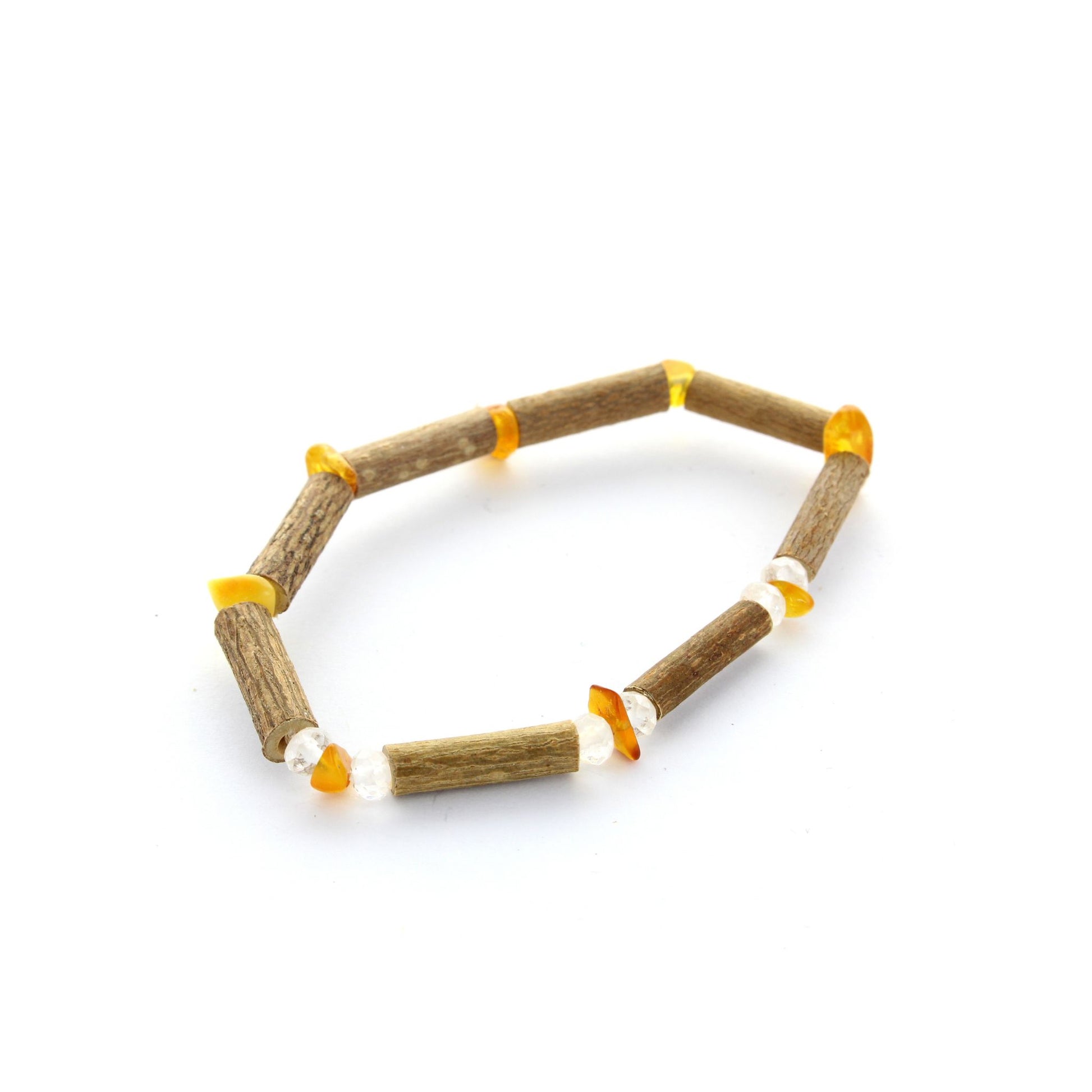 Bracelet énergisant Ambre, cristal de roche & noisetier : fusion positive & équilibre renforcé
