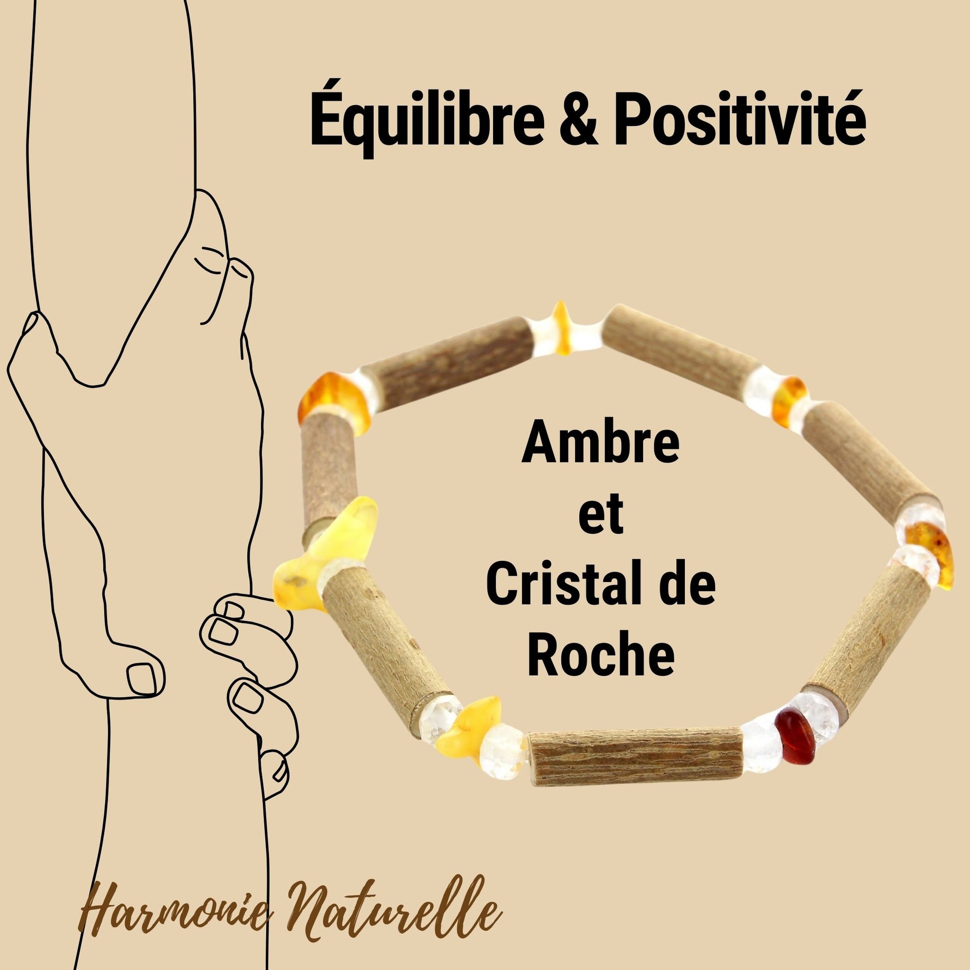 Bracelet Noisetier Ambre Cristal de Roche : Équilibre Naturel et Énergie Positive