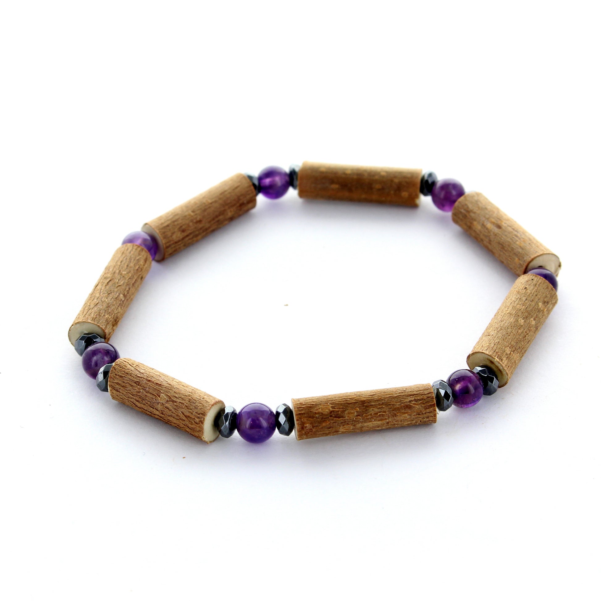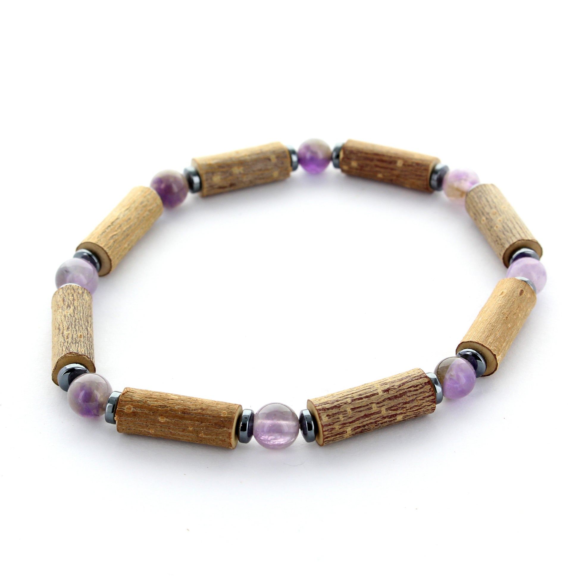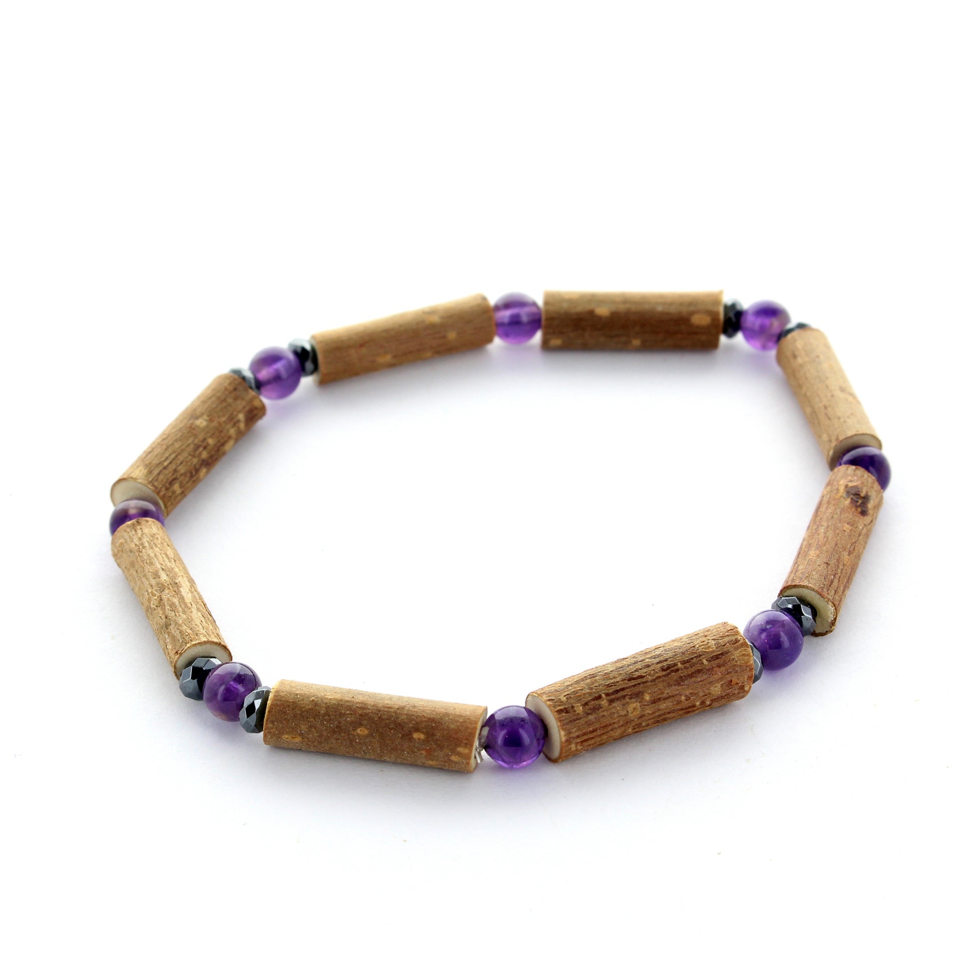 Bracelet Améthyste et Noisetier - Équilibre et Sérénité Naturelle
