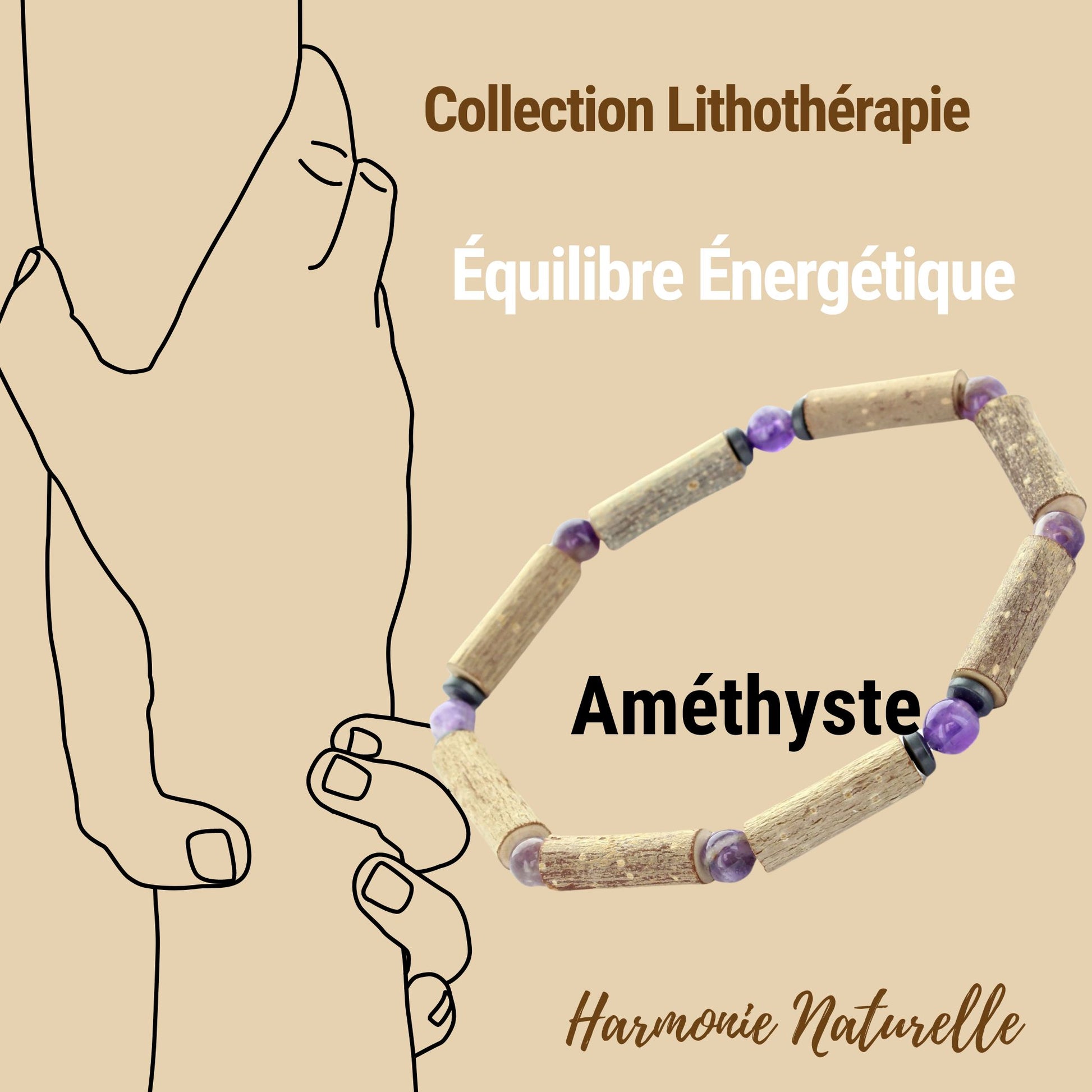 Bracelet Améthyste et Noisetier - Équilibre et Sérénité naturelle