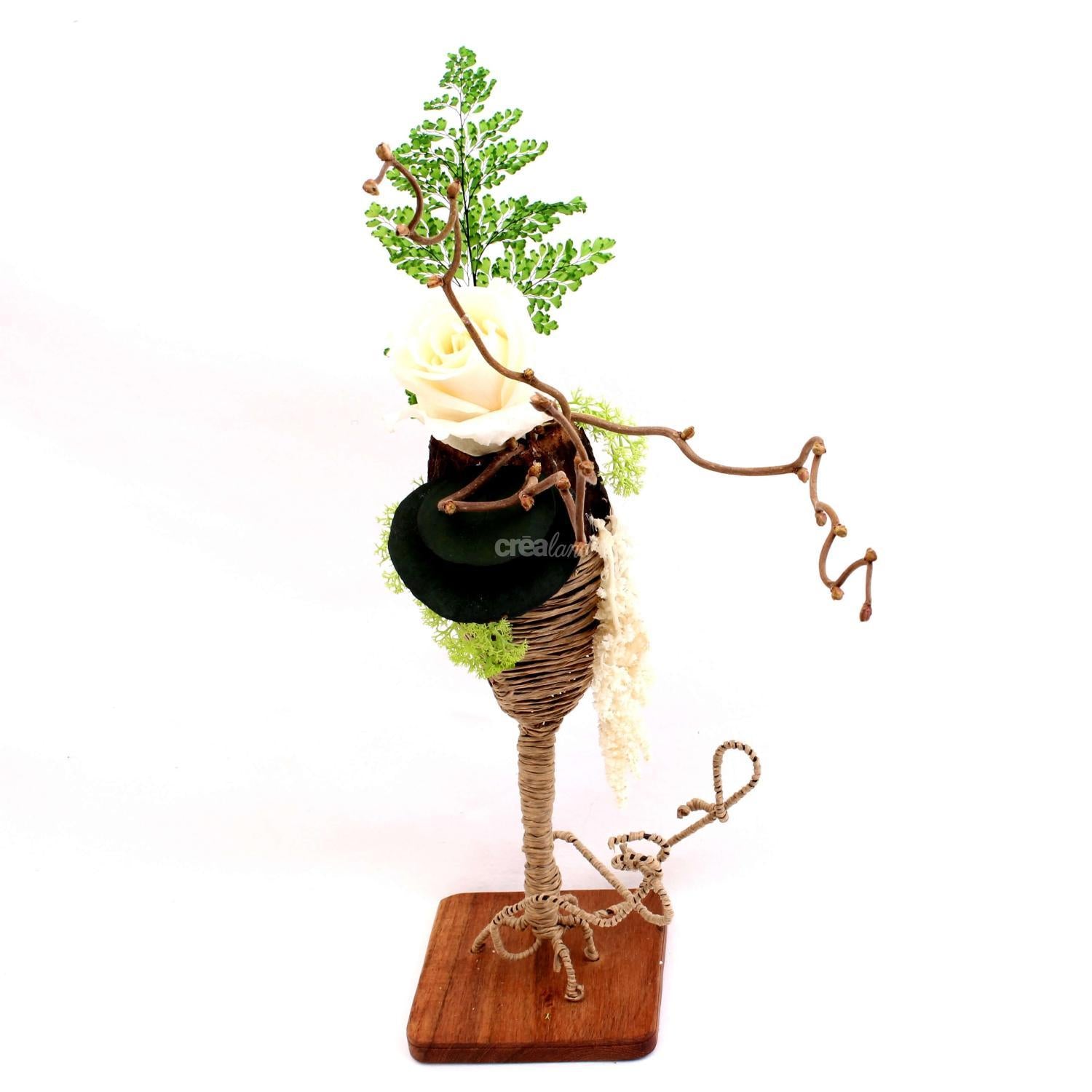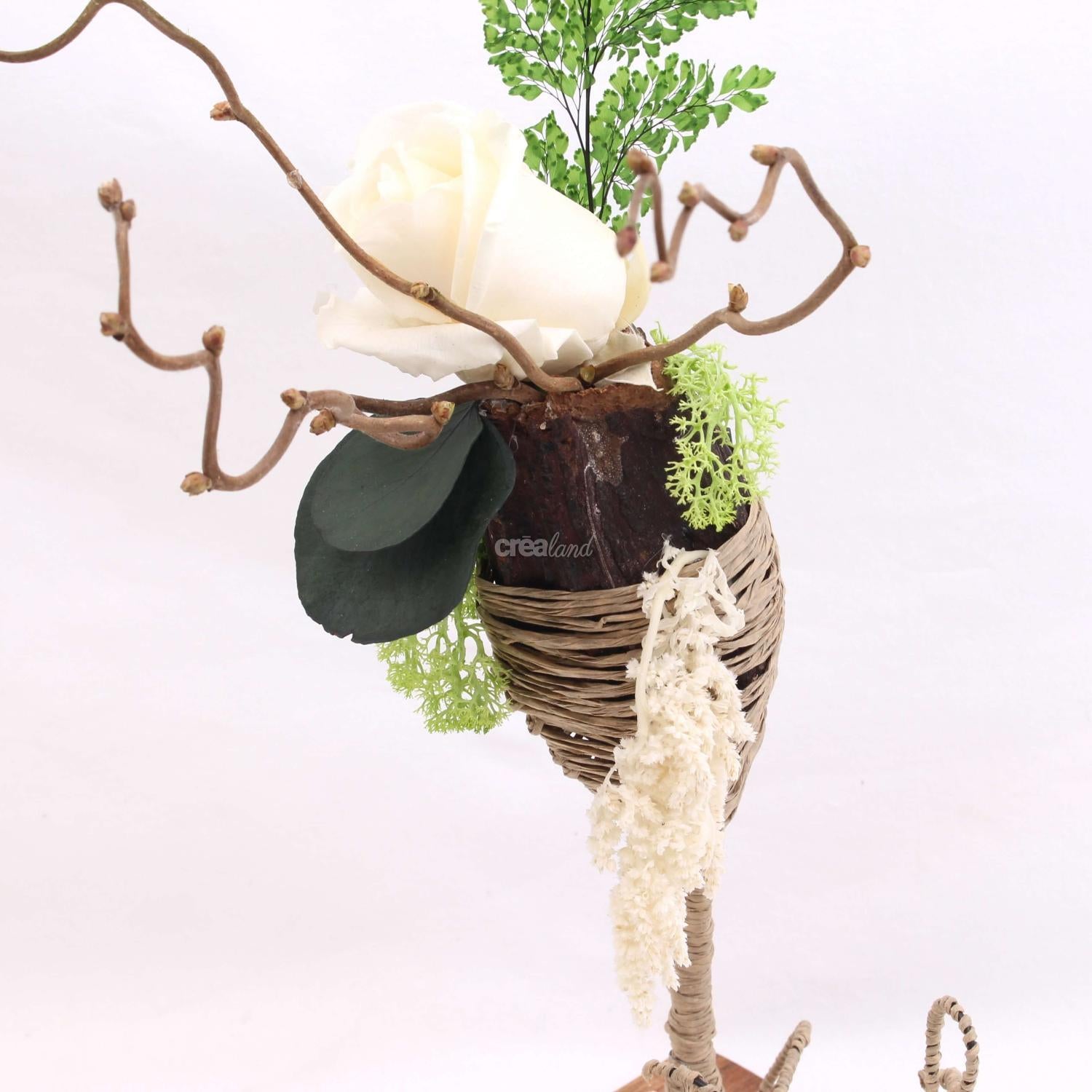 La composition florale d'une 'Rose blanche" stabilisée est composée d'éléments stabilisés qui n'aiment pas l'eau ni un endroit humide. Le plein soleil n'est pas idéal non plus.