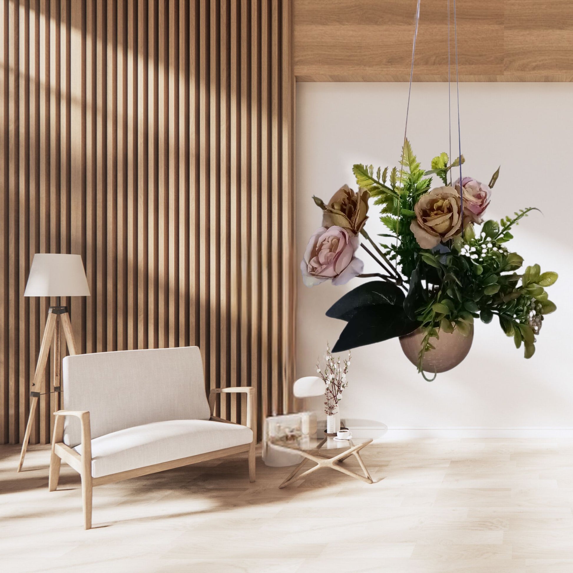 Jardin Suspendu avec Fleurs Artificielles - Support Naturel et Feuillage