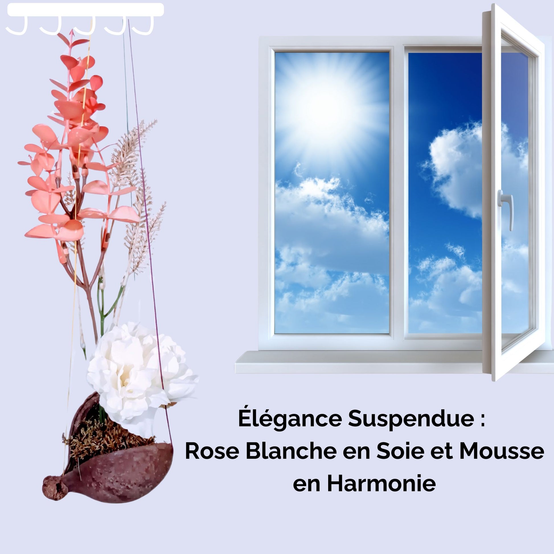 Élégance Suspendue : Rose Blanche en Soie et Mousse en Harmonie